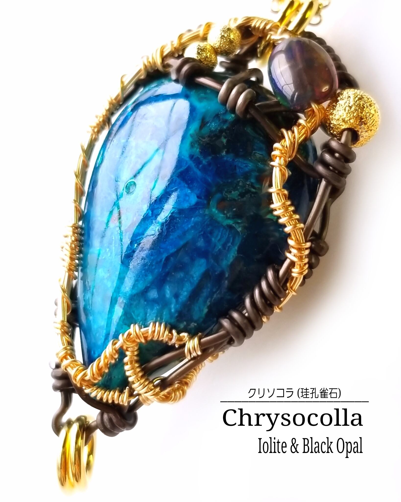 クリソコラ&アイオライトのワイヤーアート・ペンダント
