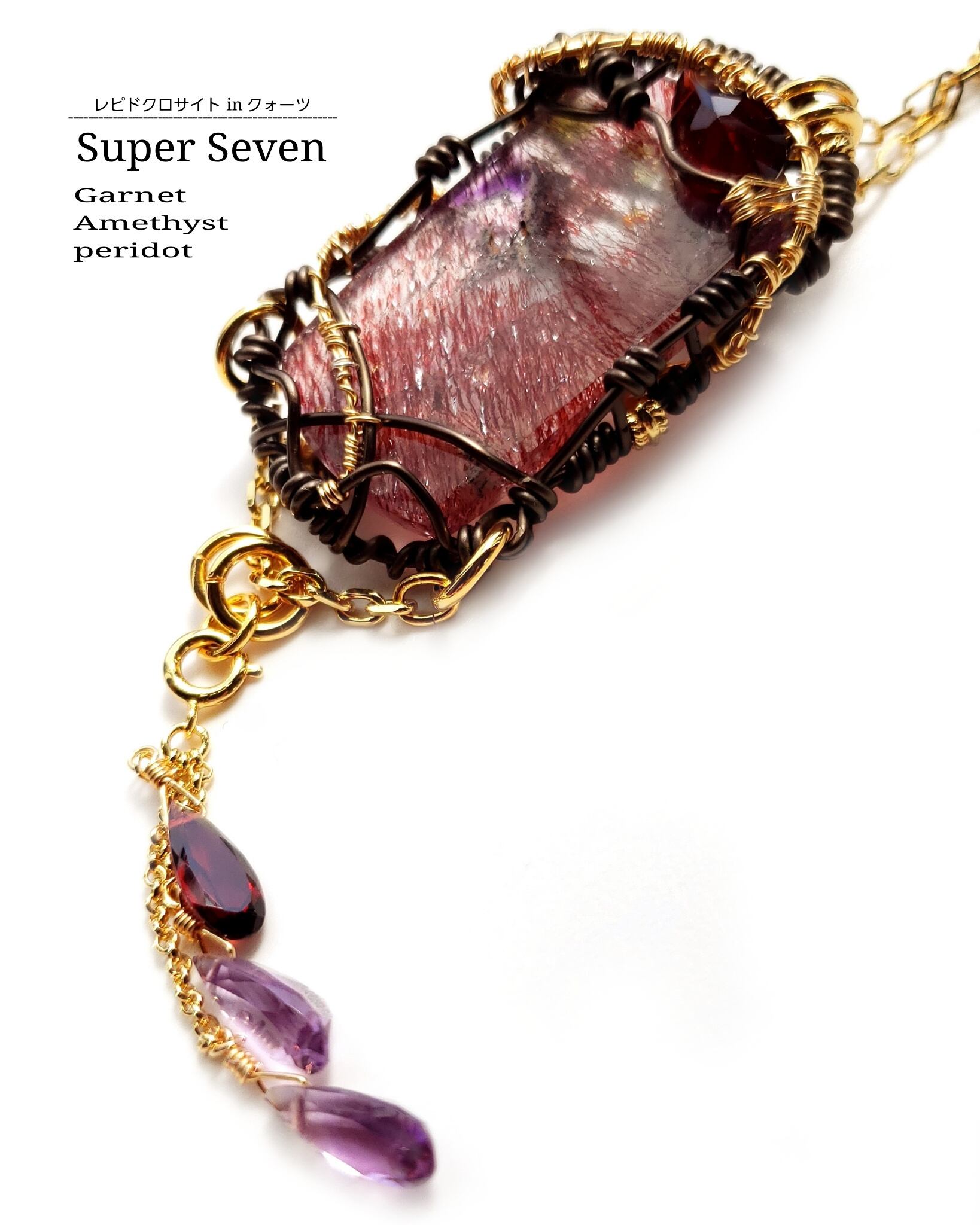 ブラジル産スーパーセブン&ガーネット&アメジストのワイヤーアート・ペンダント