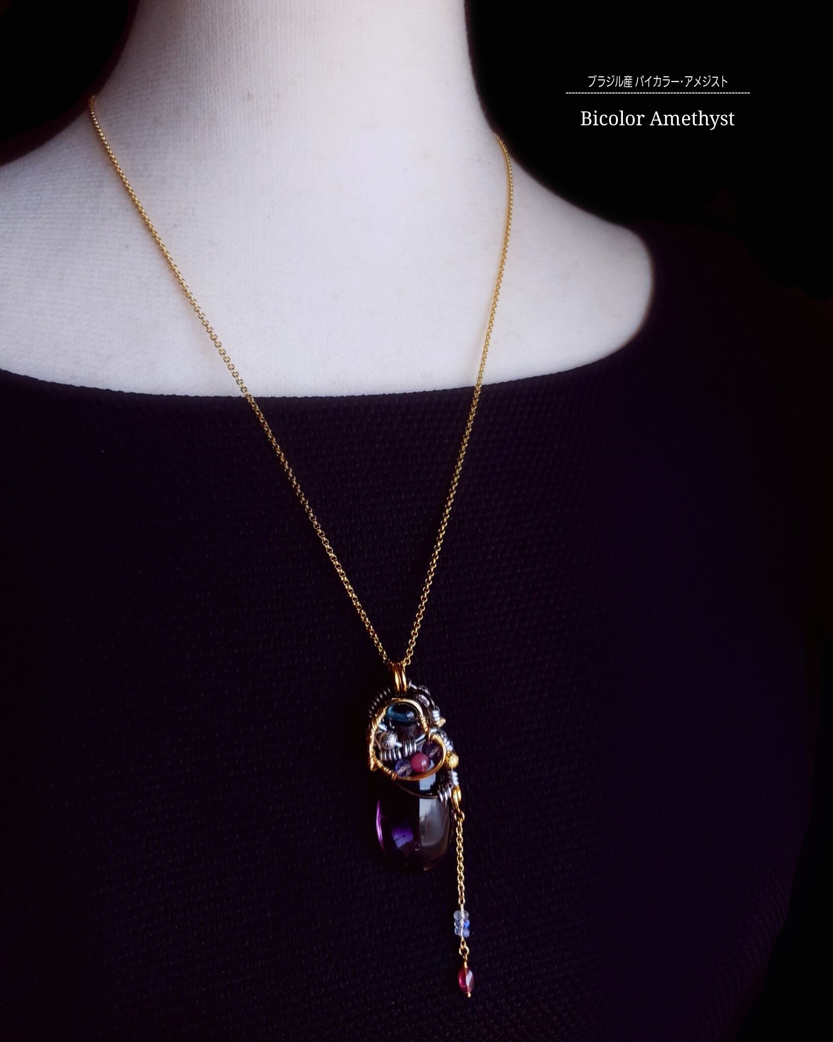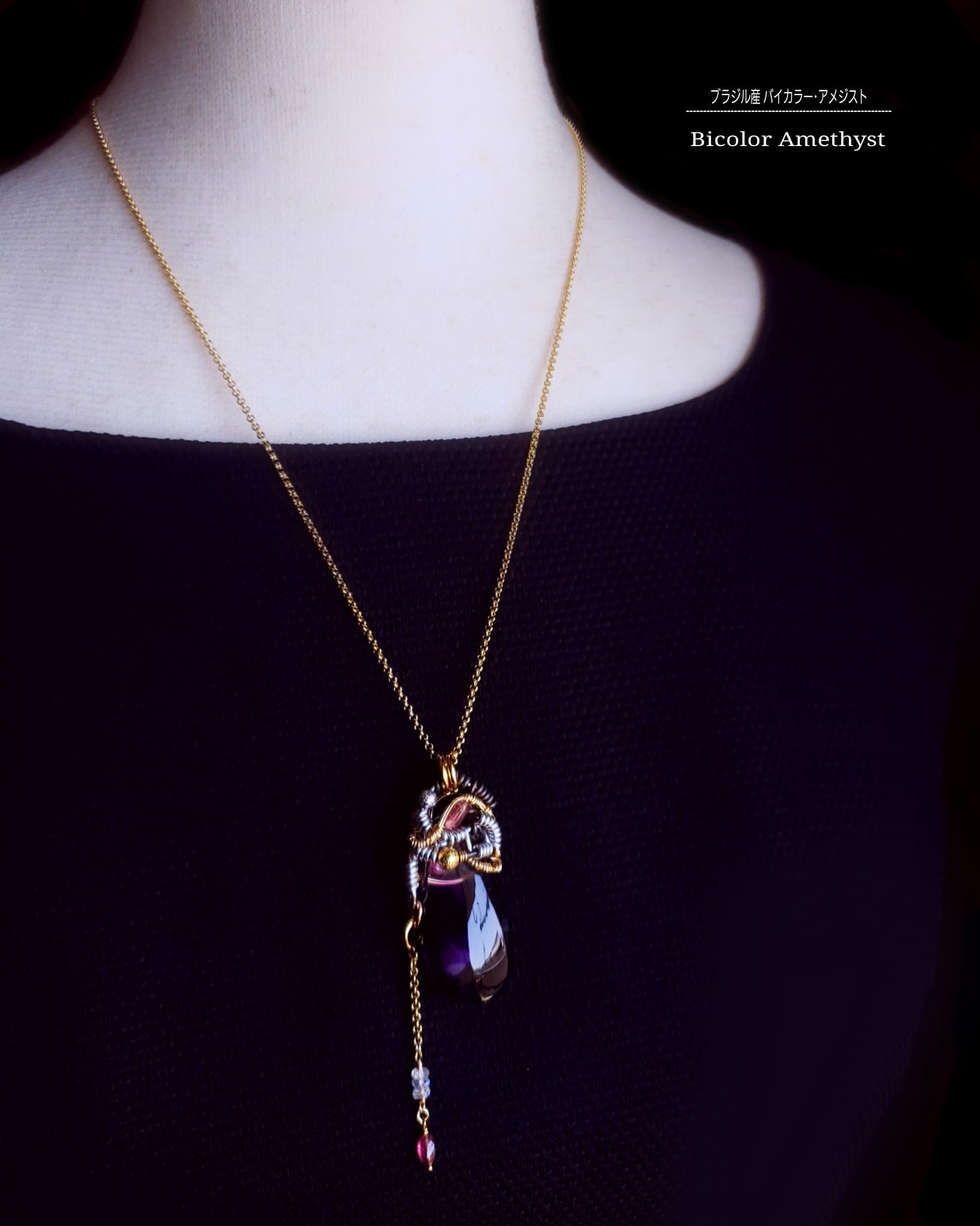 ブラジル産バイカラー・アメジストのワイヤーアート・ペンダント