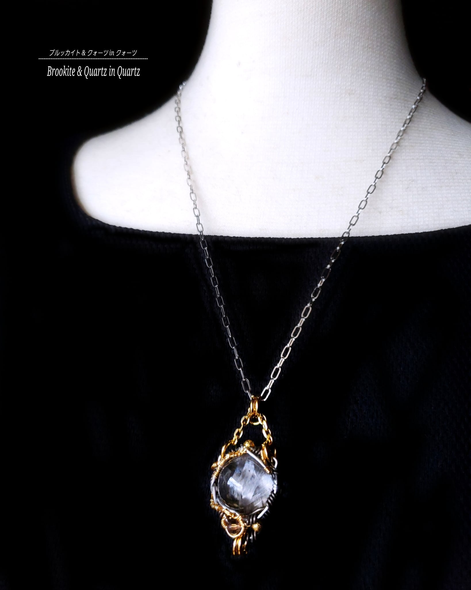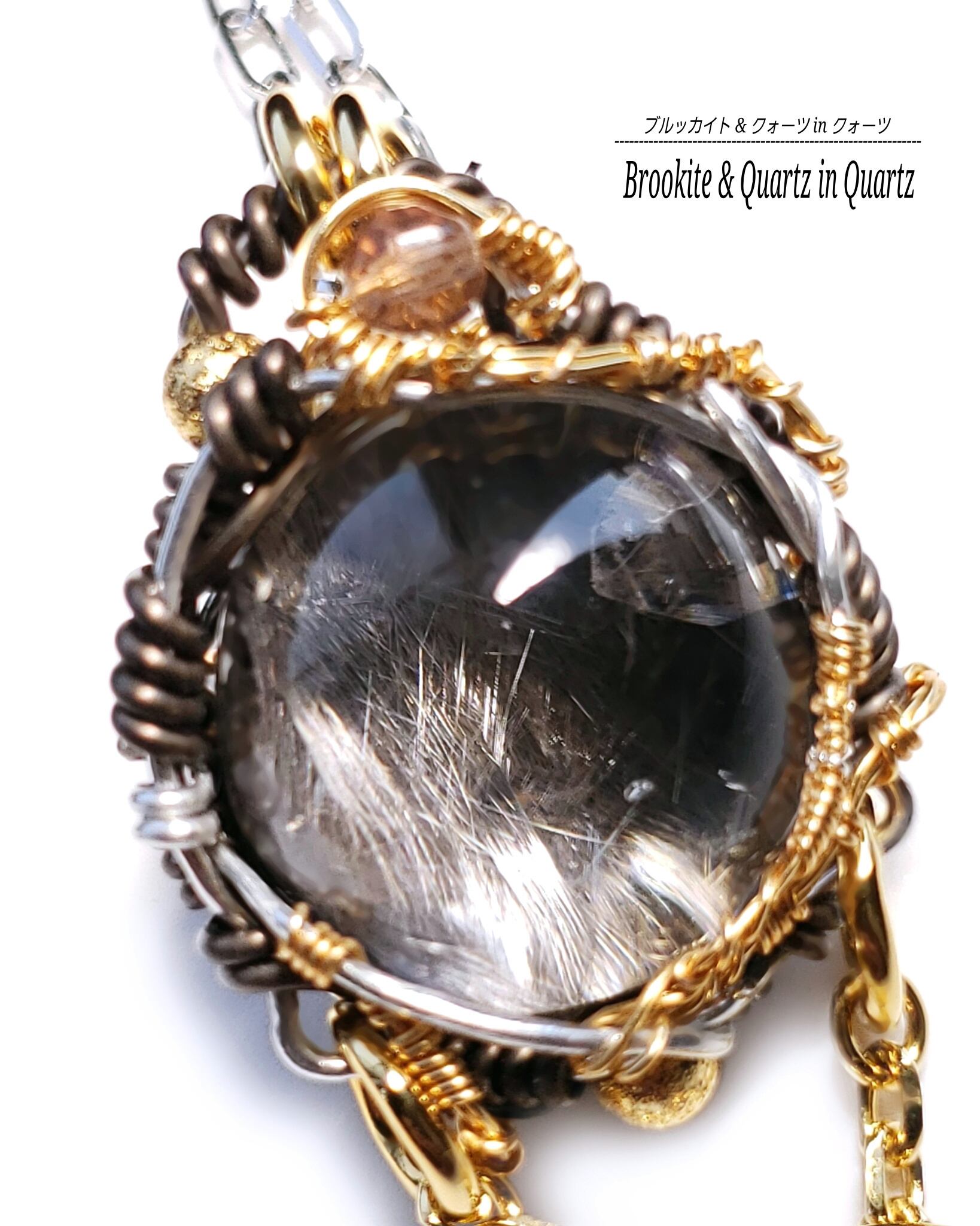 ブルッカイト&クォーツinクォーツのワイヤーアート・ペンダント