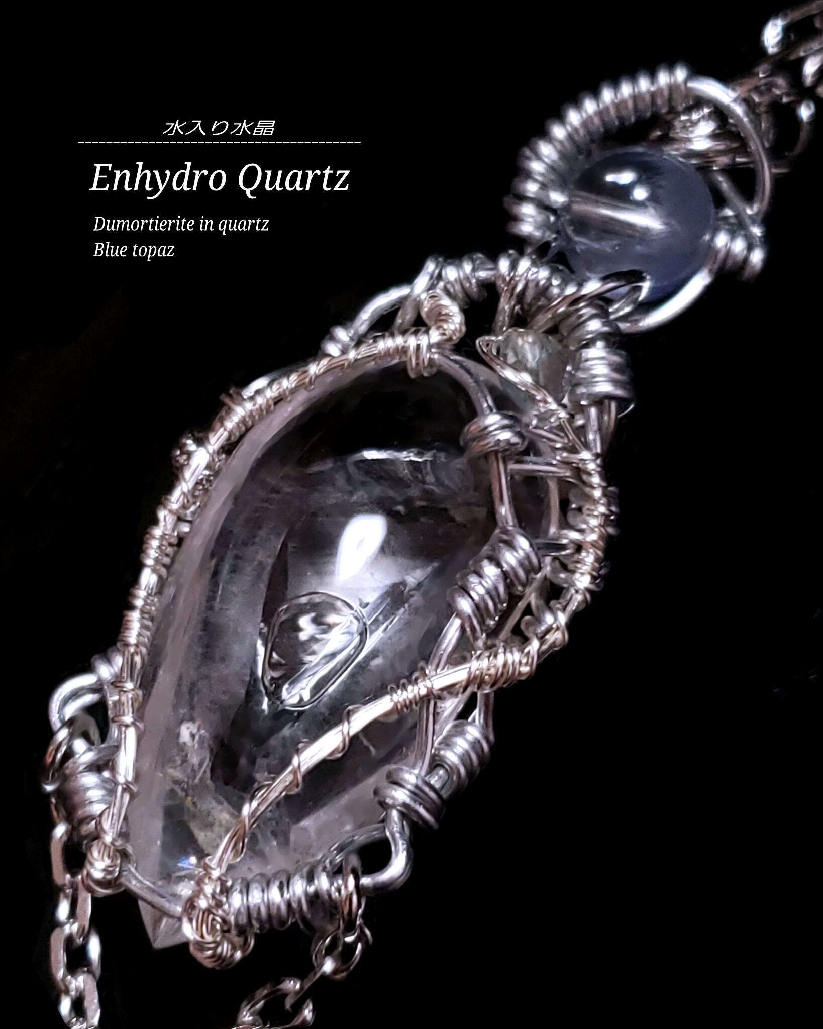 水入り水晶&デュモルチェライトインクォーツのワイヤーアート・ペンダント