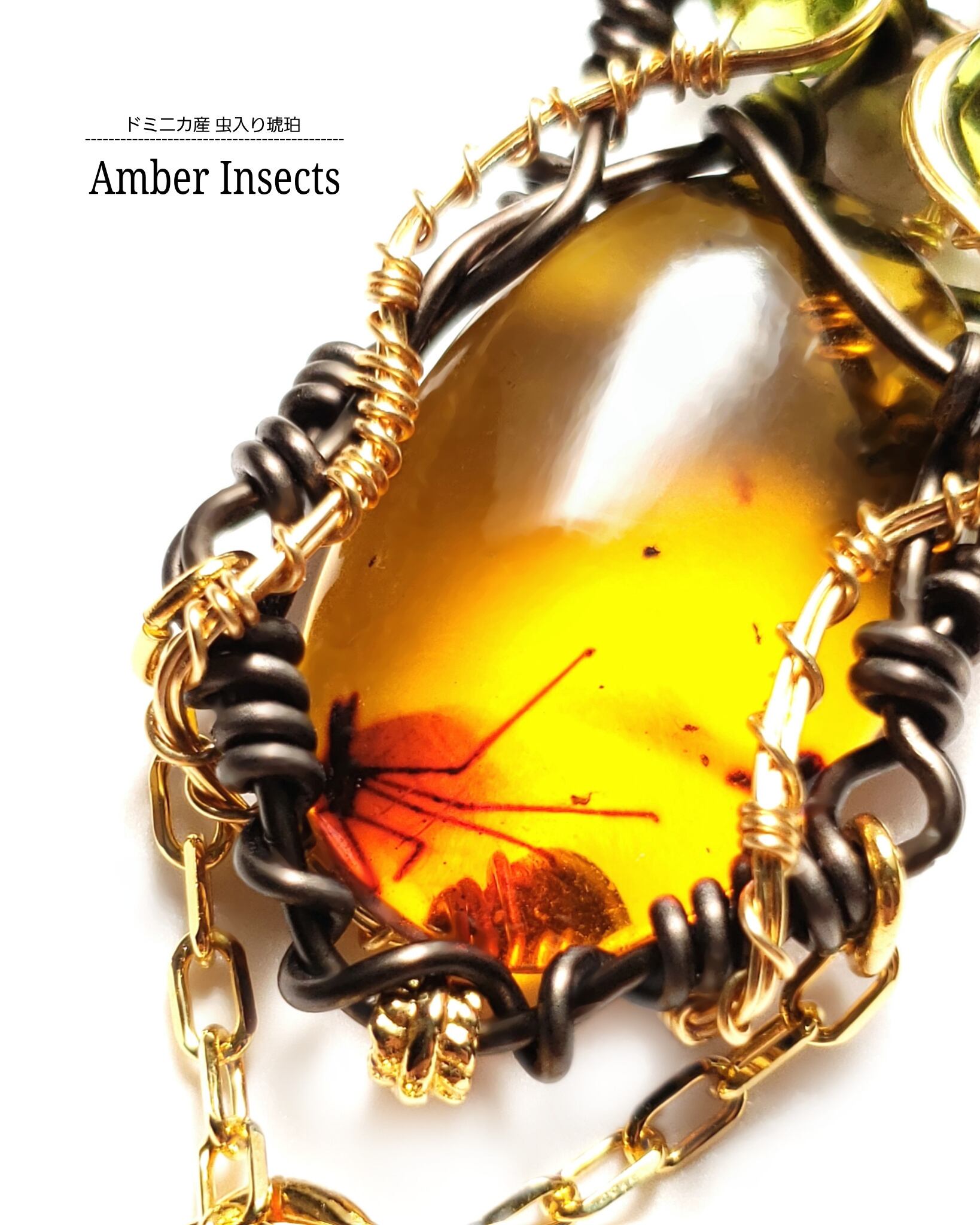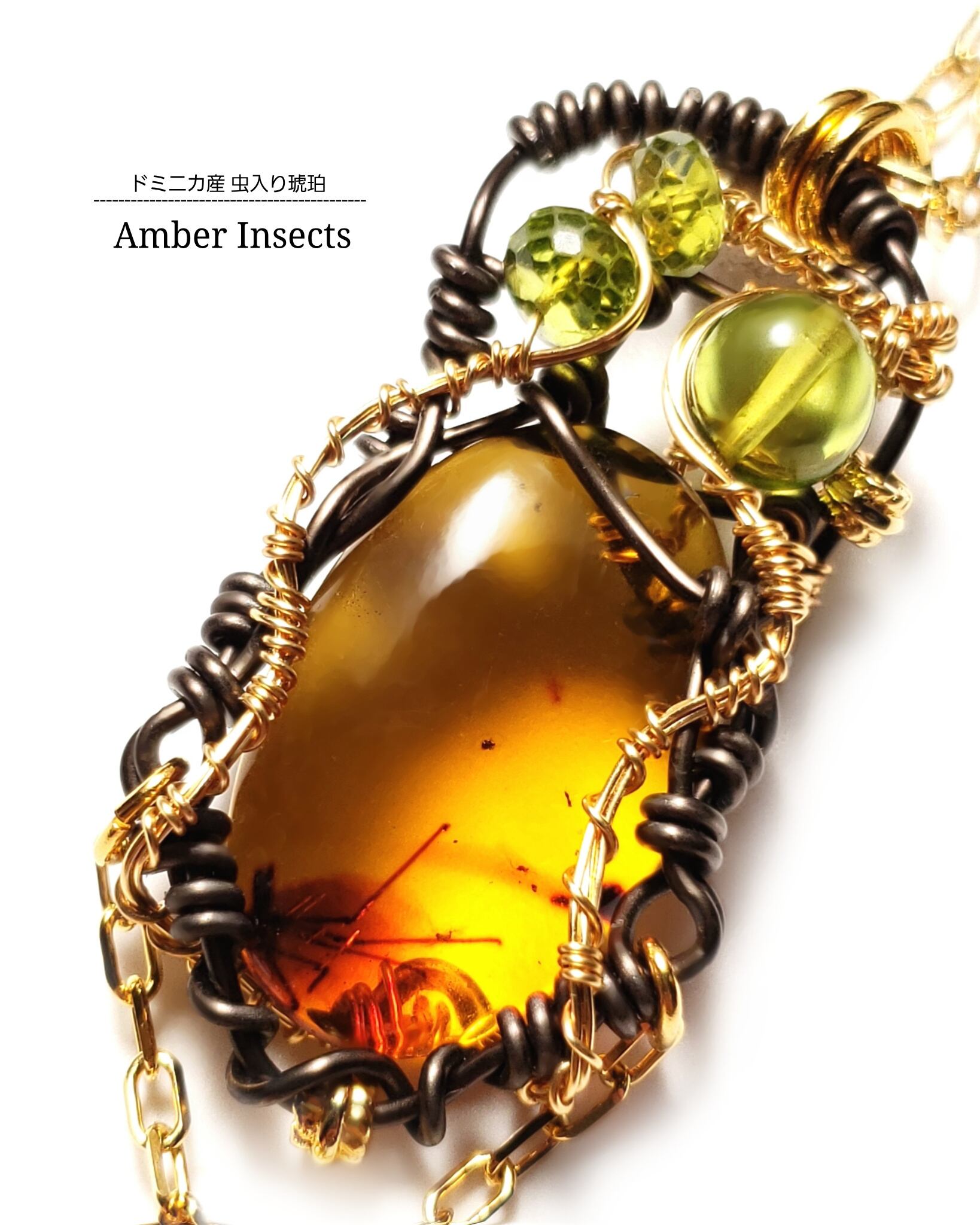 ドミニカ産虫入り琥珀のワイヤーアート・ペンダント