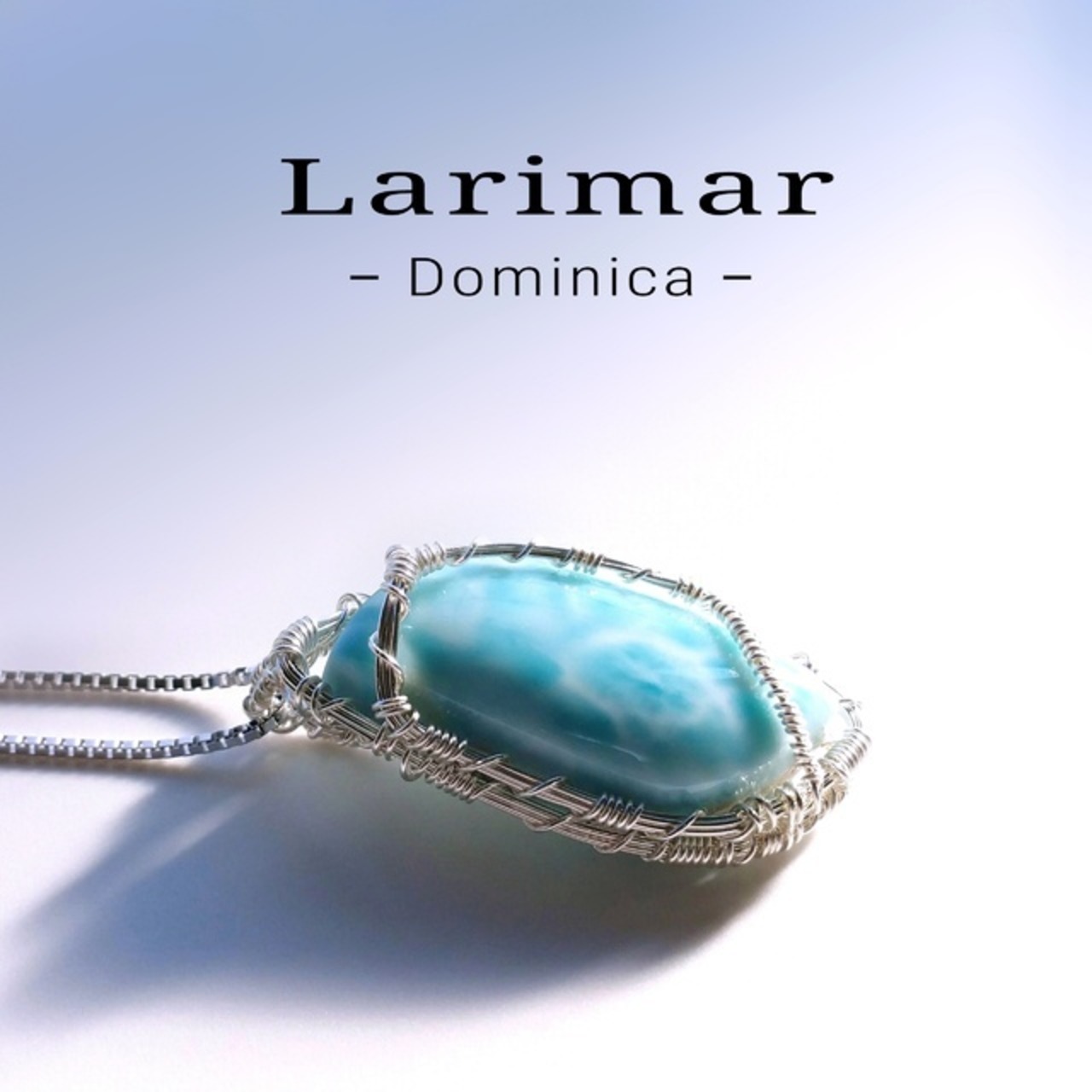 淡くて優しいライトブルーのラリマーを、シルバーのアーティスティックワイヤーを使用し、ペンダントトップにデザインしました。