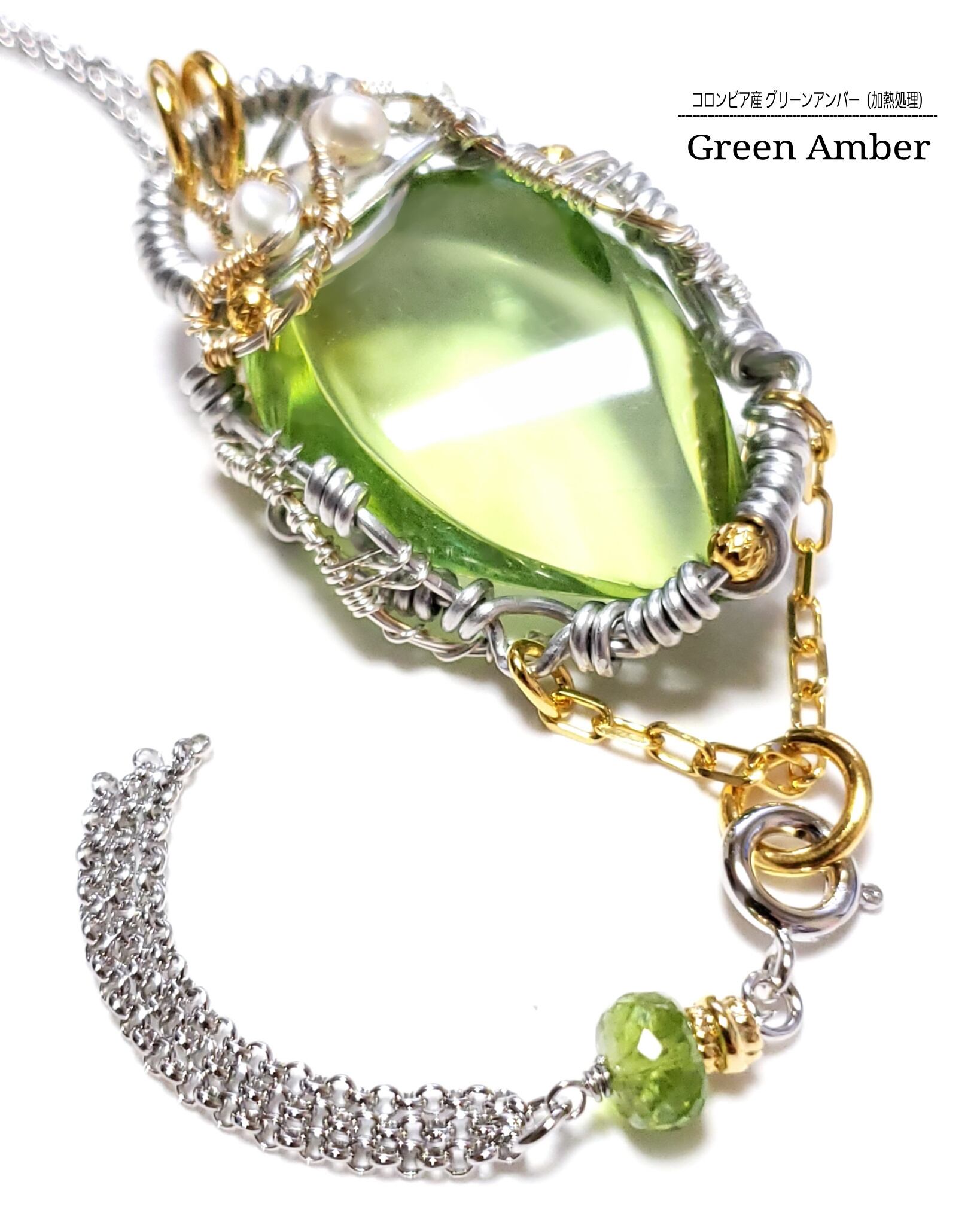 コロンビア産グリーンアンバー(加熱処理)のワイヤーアート・ペンダント