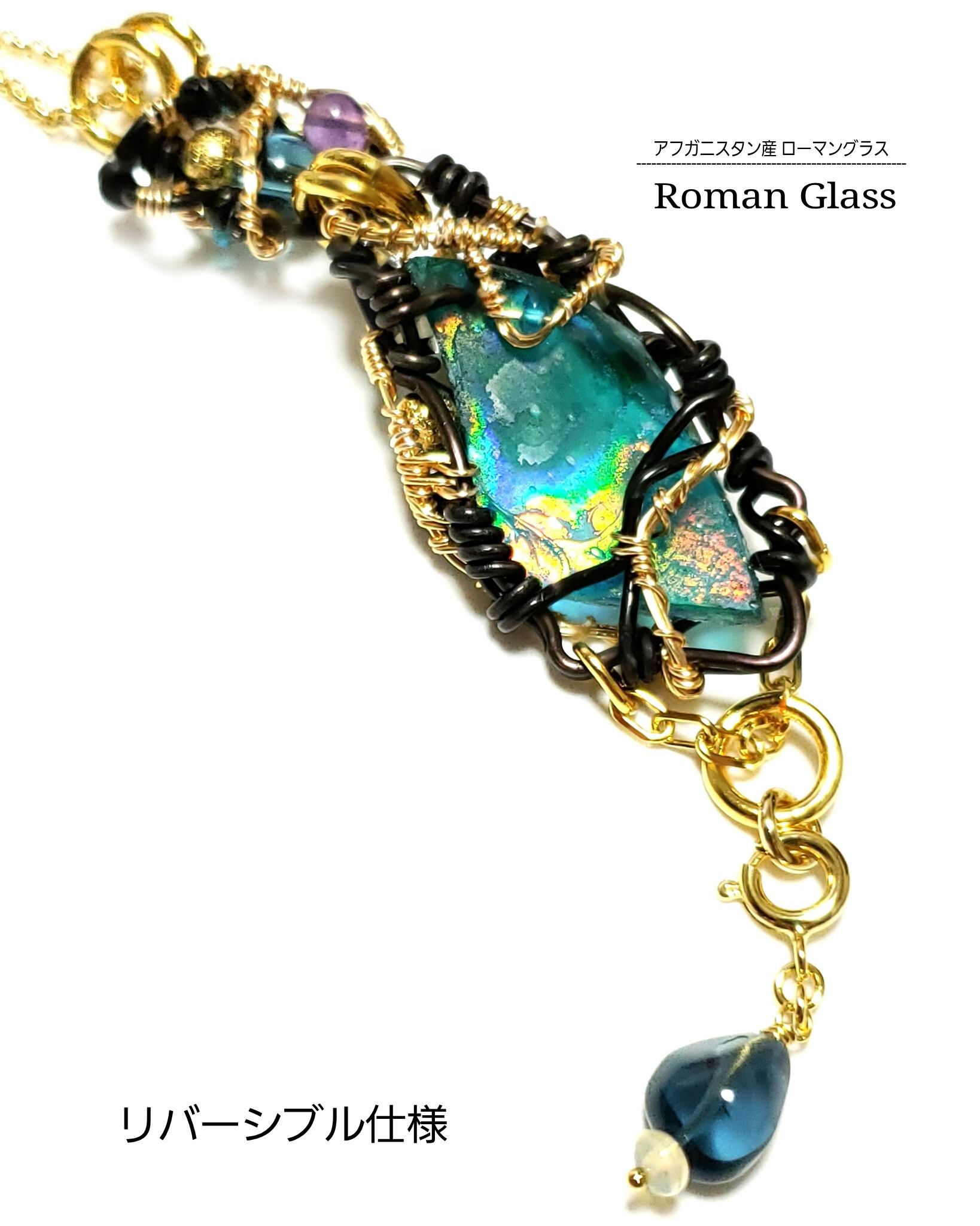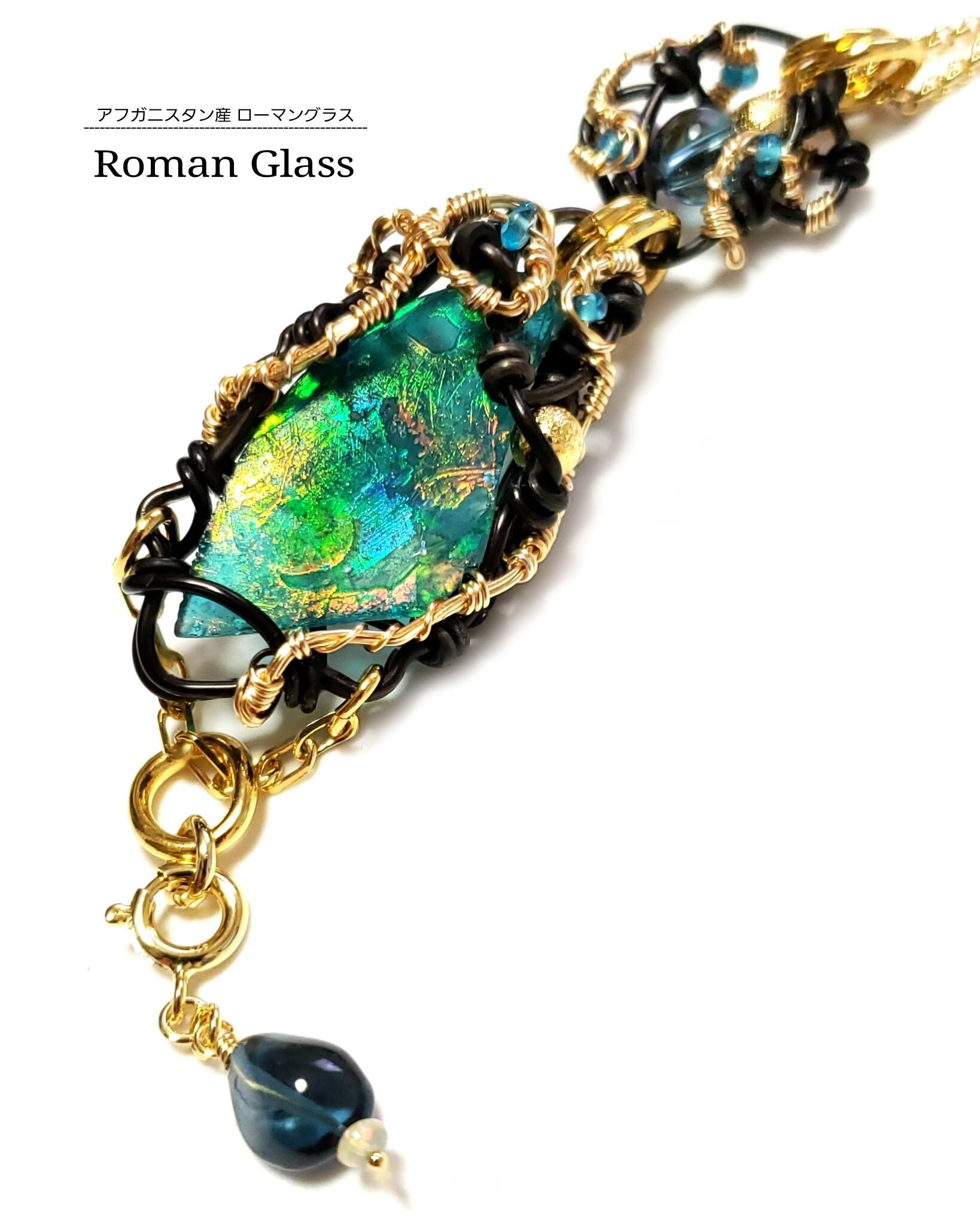 アフガニスタン産ローマングラスのワイヤーアート・ペンダント