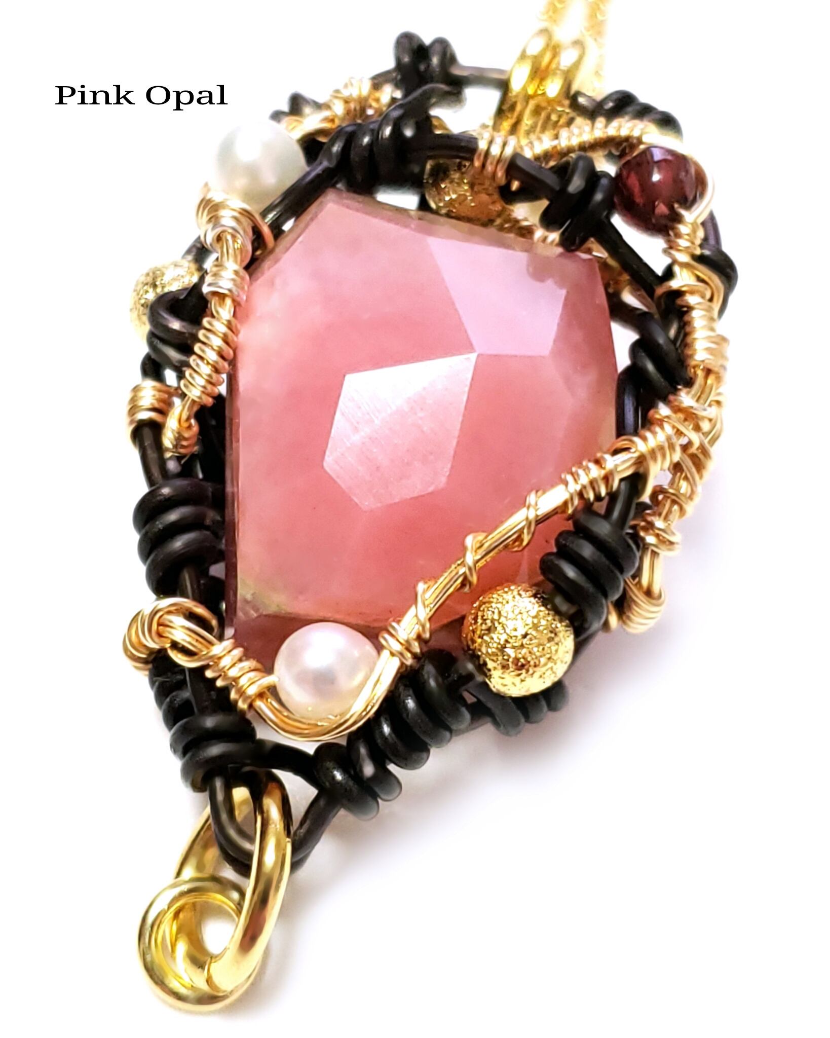 ペルー産ピンクオパールのワイヤーアート・ペンダント