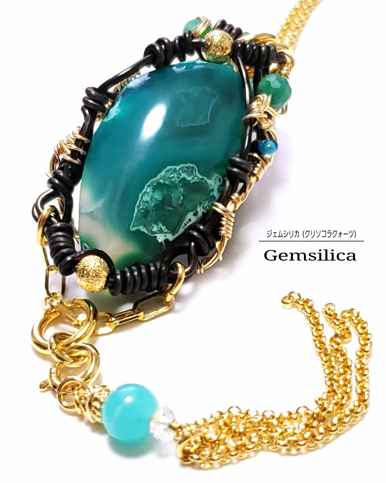 インスピレーション鉱山産ジェムシリカのワイヤーアート・ペンダント