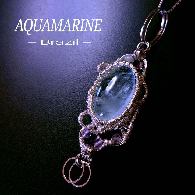 アクアマリンのワイヤーアート・ペンダント&ブレスレット