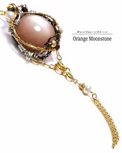 オレンジムーンストーンのワイヤーアート・ペンダント