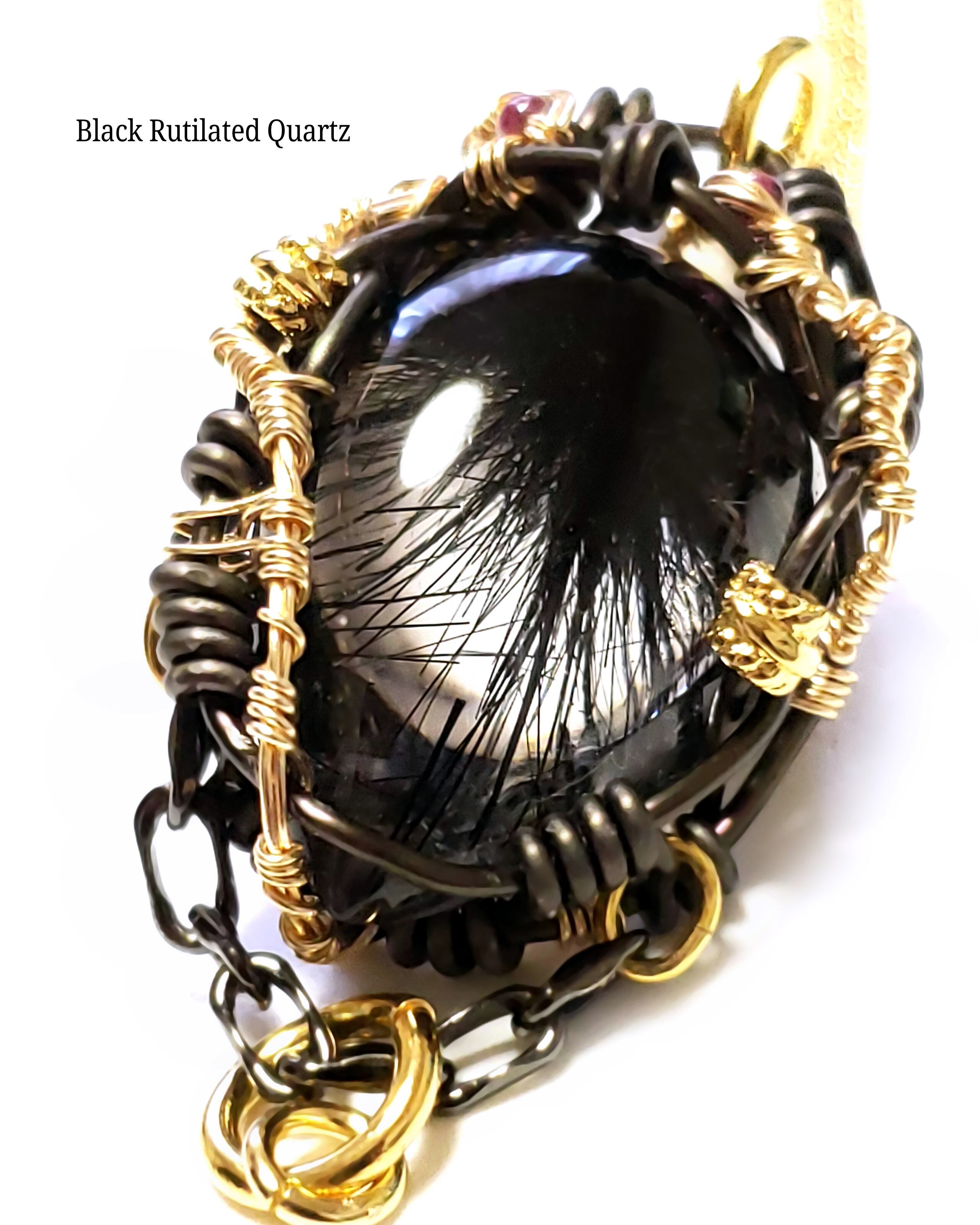 ブラックルチルクォーツのワイヤーアートペンダント