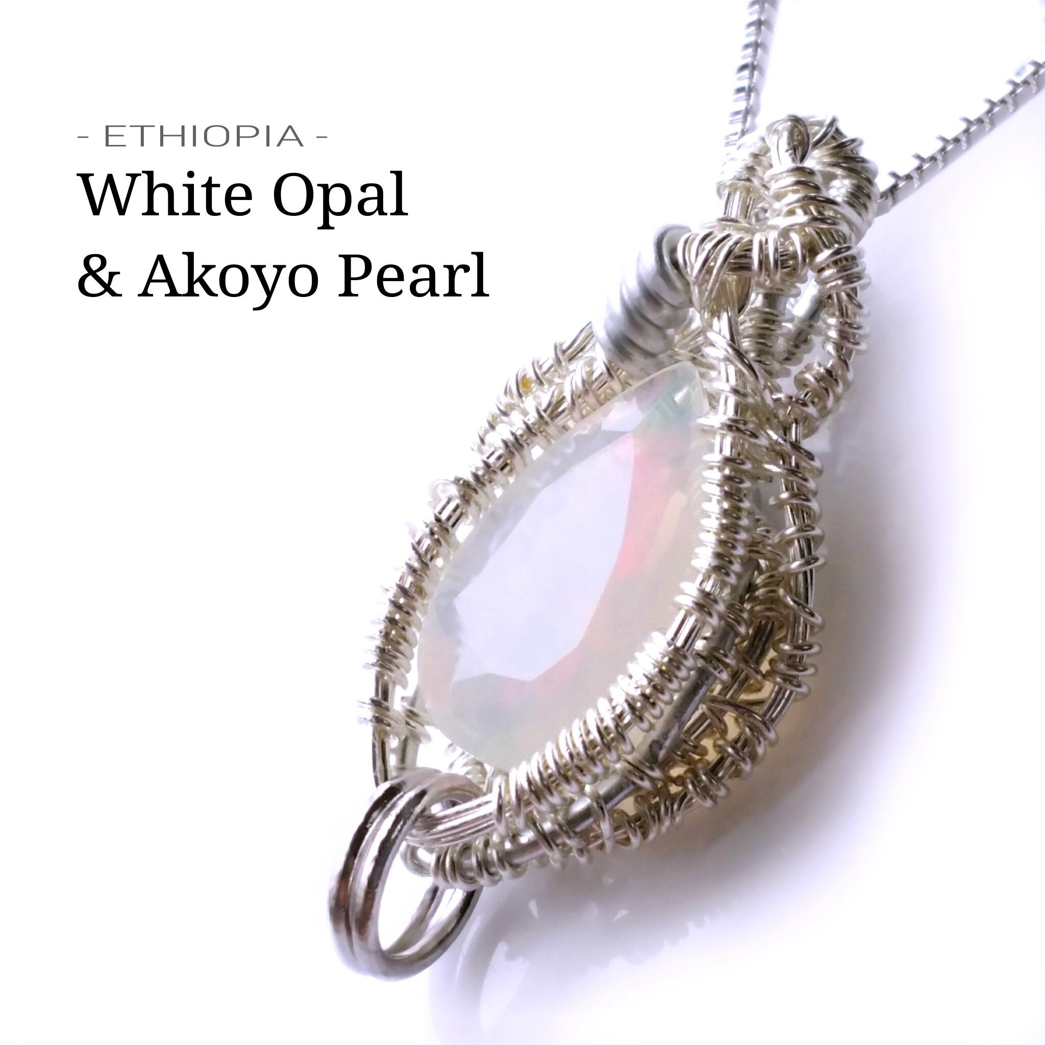 エチオピア産のホワイトオパールと、伊勢志摩産のアコヤ真珠を組み合わせ、シルバーのアーティスティックワイヤーを使用し、ペンダントトップにデザインしました。