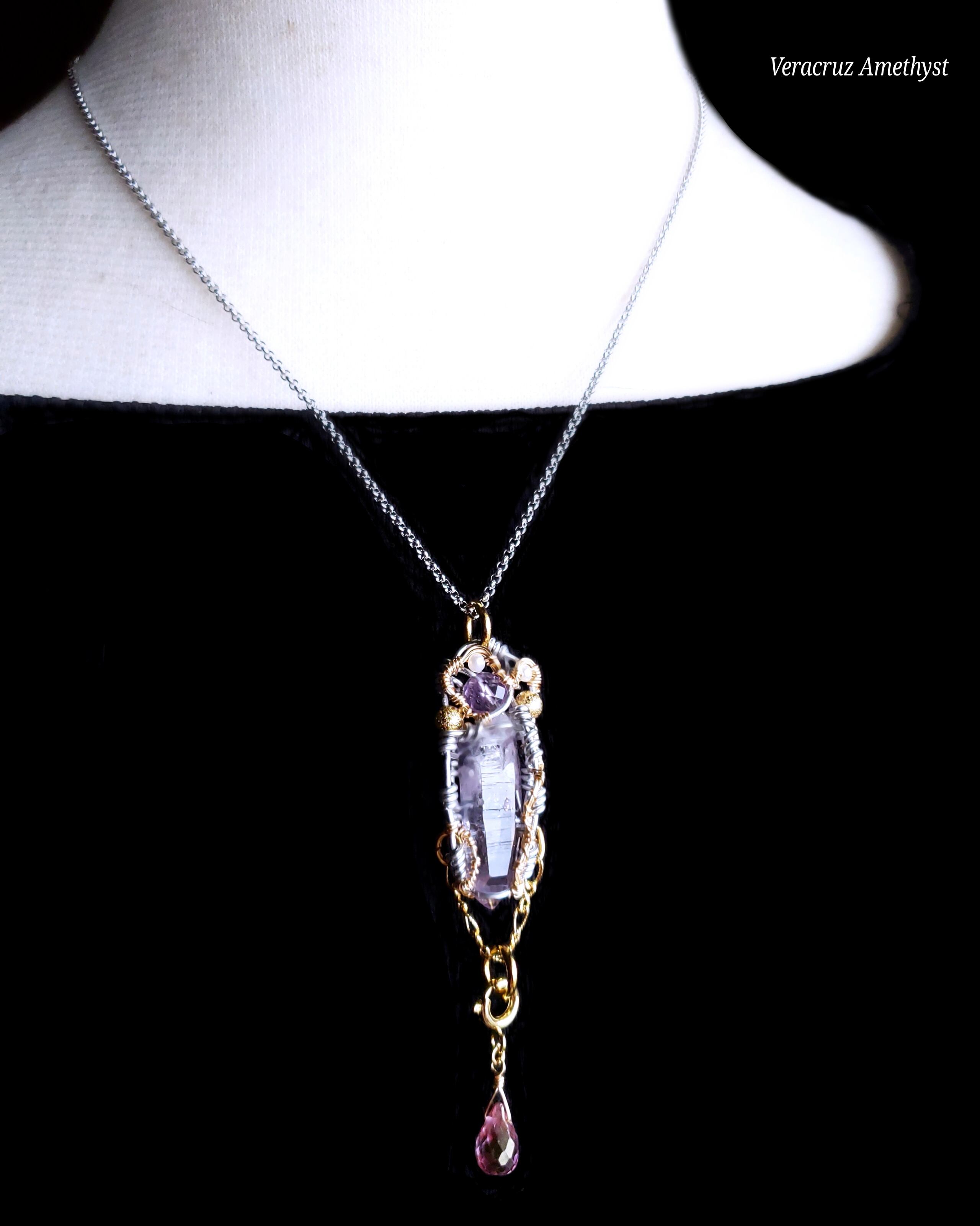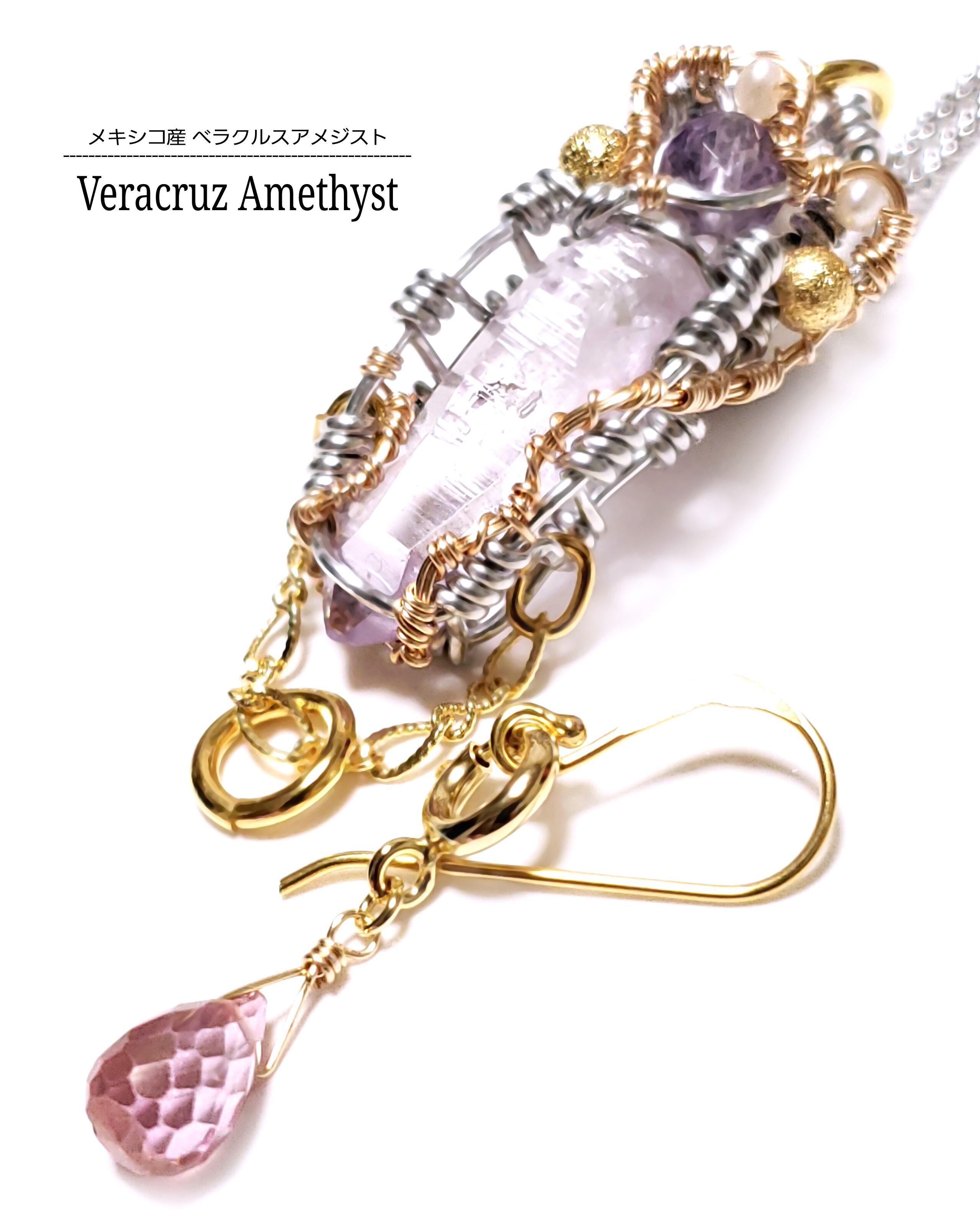 メキシコ産ベラクルスアメジスト(原石結晶)のワイヤーアート・ペンダント