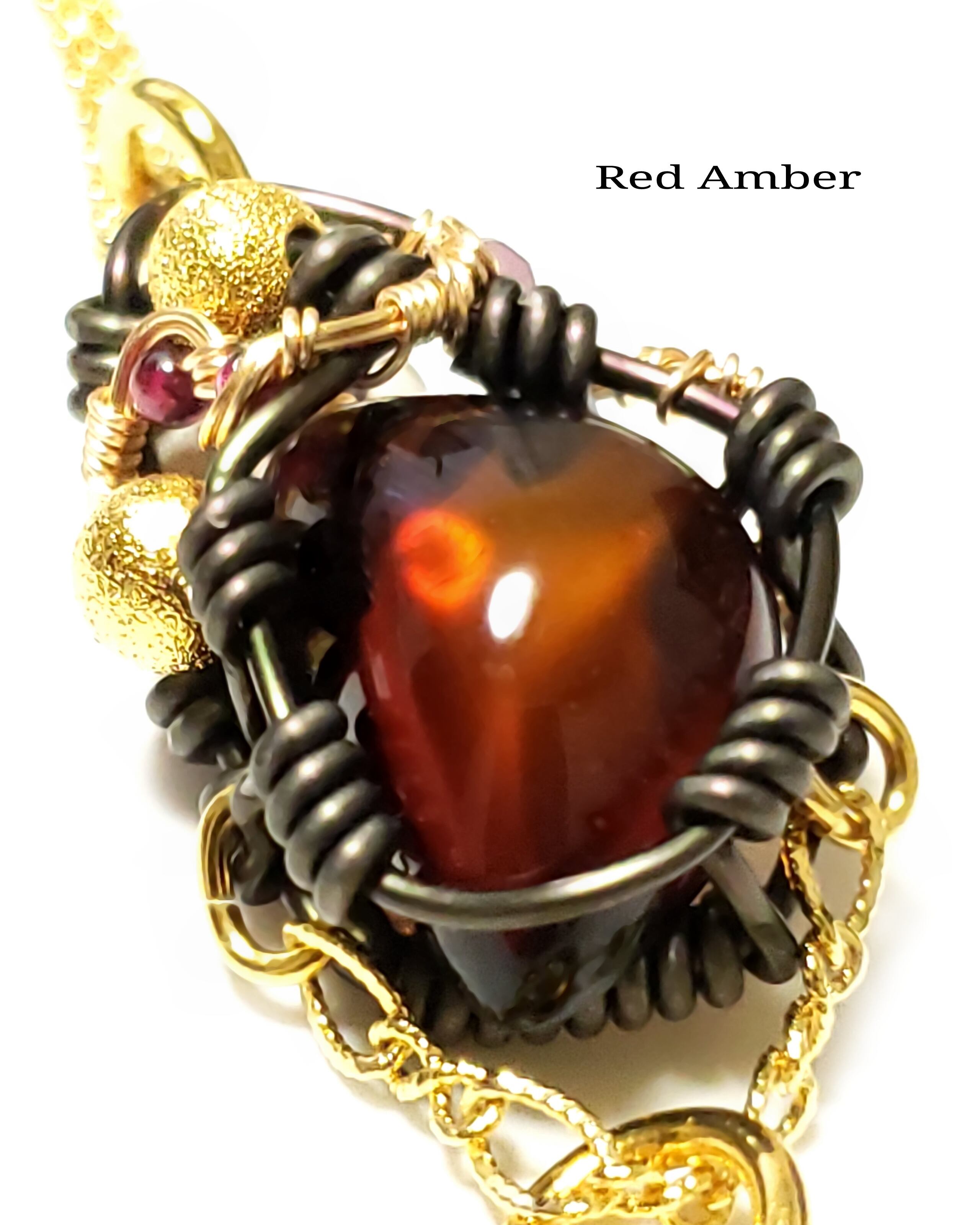 スマトラ産レッドアンバーのワイヤーアート・ペンダント