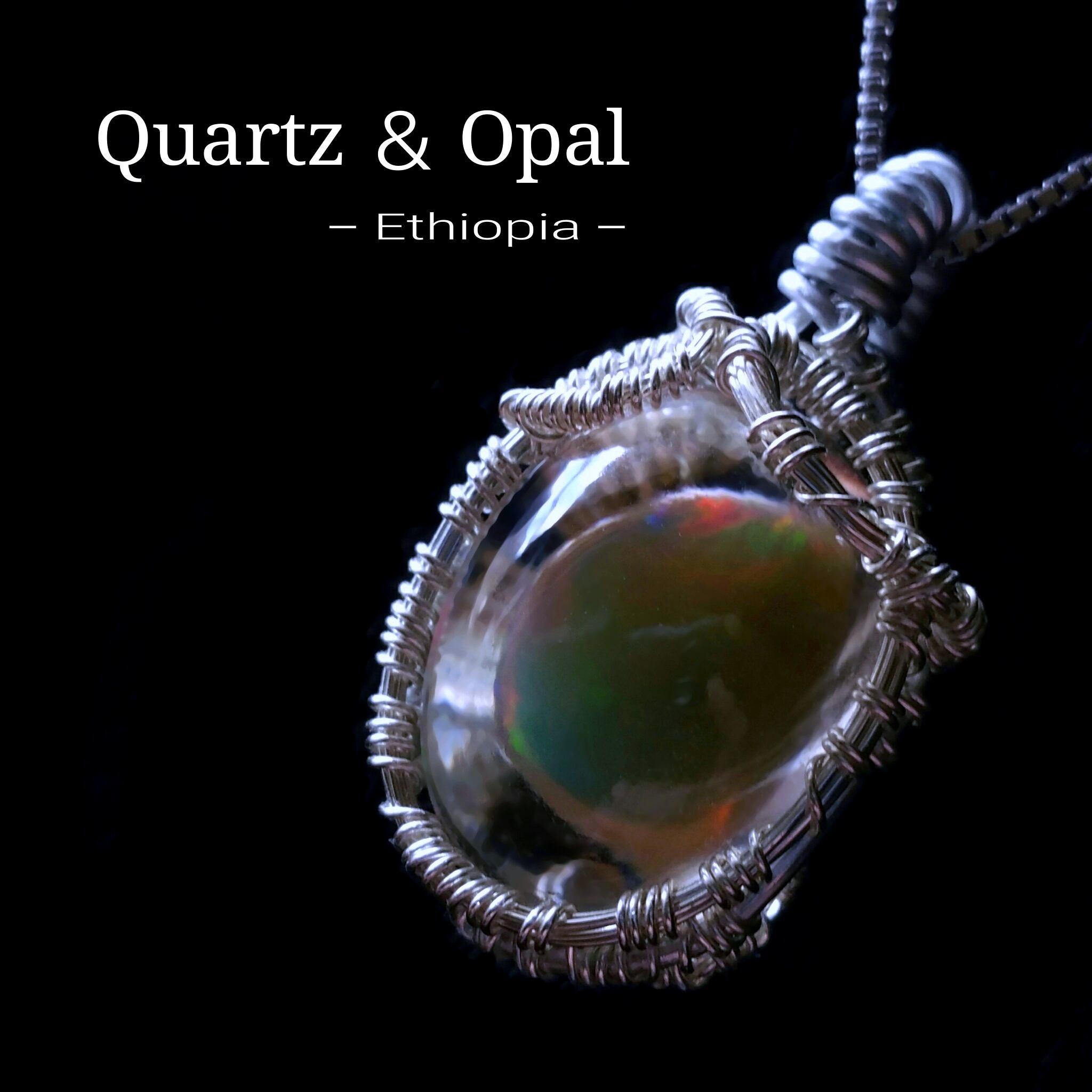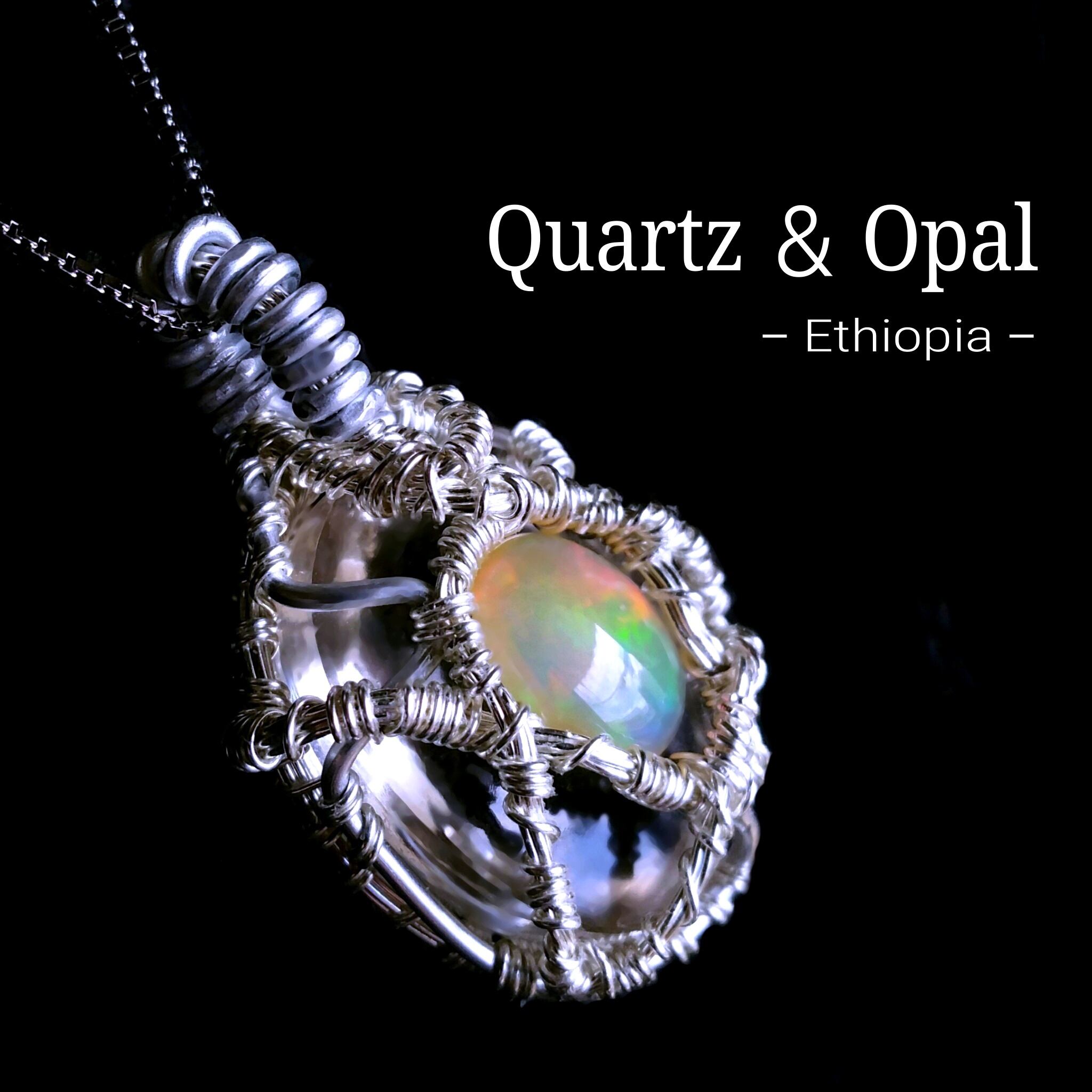 クォーツ(水晶)とエチオピア産のオパールを組み合わせ、シルバーのアーティスティックワイヤーを使用し、ペンダントトップにデザインしました。