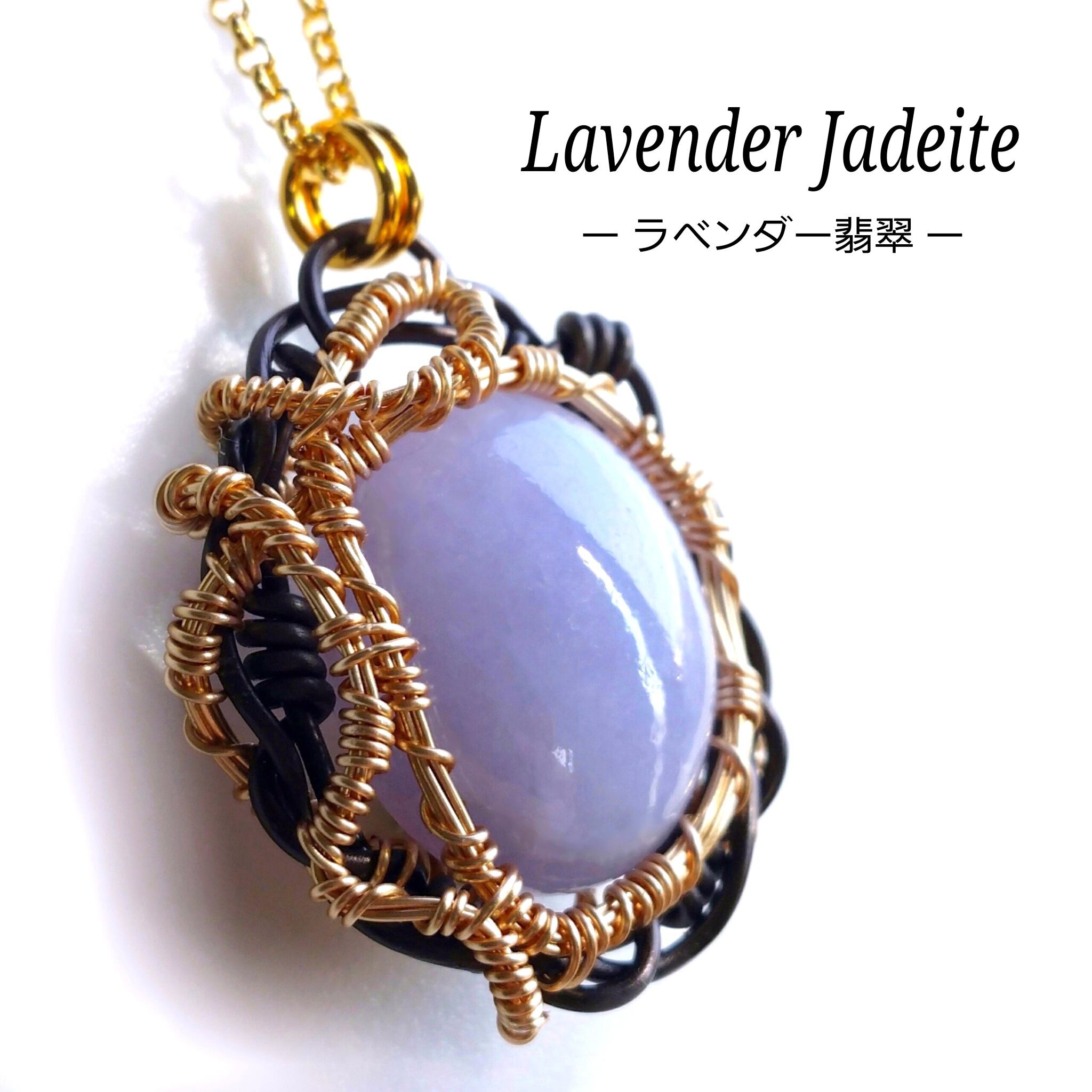 ミャンマー産の淡いラベンダー色の翡翠を、シルバーのアーティスティックワイヤーとアルマイト鍍金アルミ製ワイヤーを使用し、ペンダントトップにデザインしました。