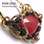 ピンクオパール&ブラックスピネルのワイヤーアート・ペンダント(チェーン2本付き)