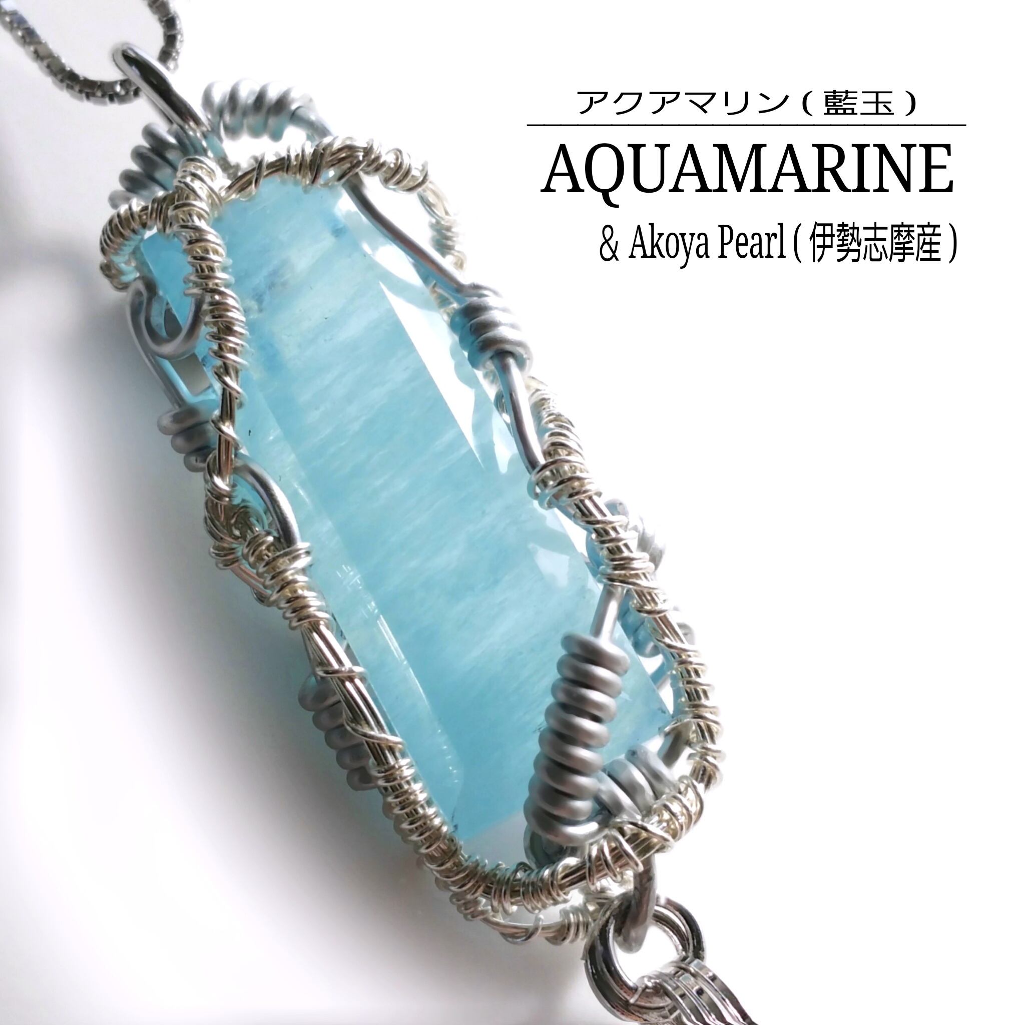 アクアマリン&アコヤ真珠(伊勢志摩産)のワイヤーアート・ペンダント