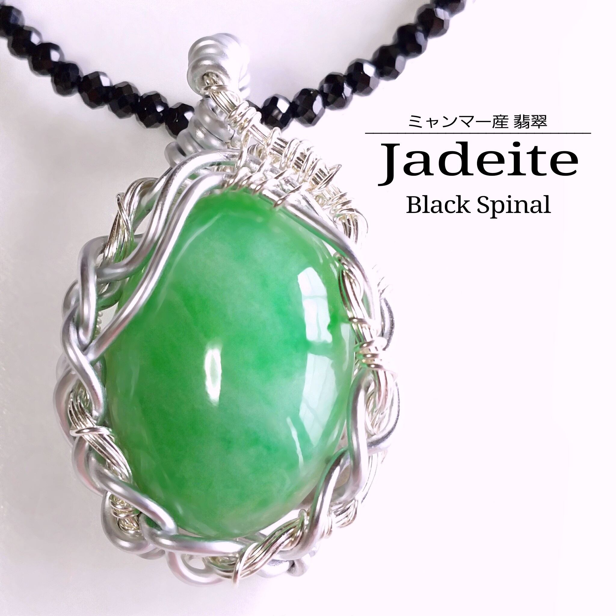 ミャンマー産翡翠&ブラックスピネルのワイヤーアート・ペンダント