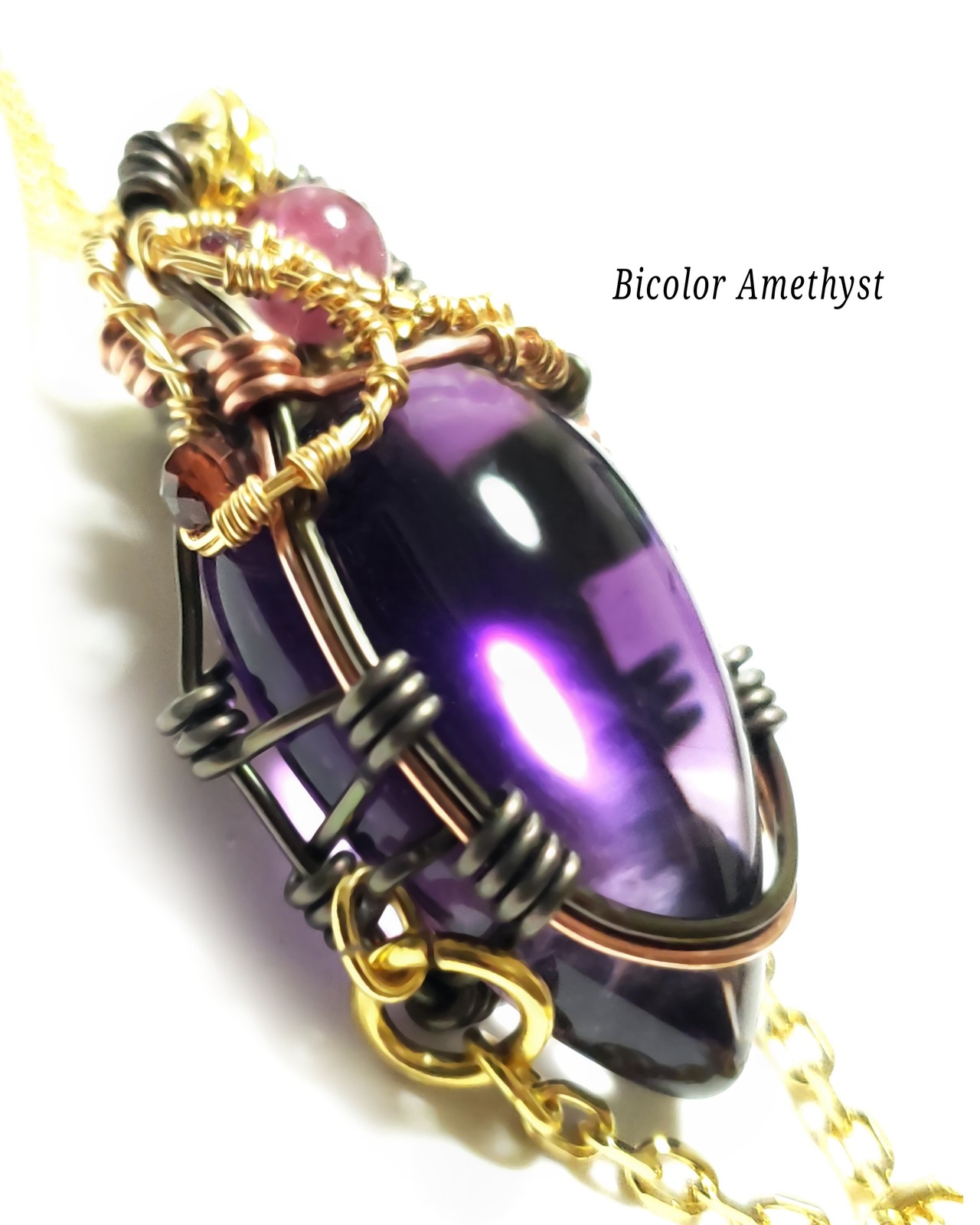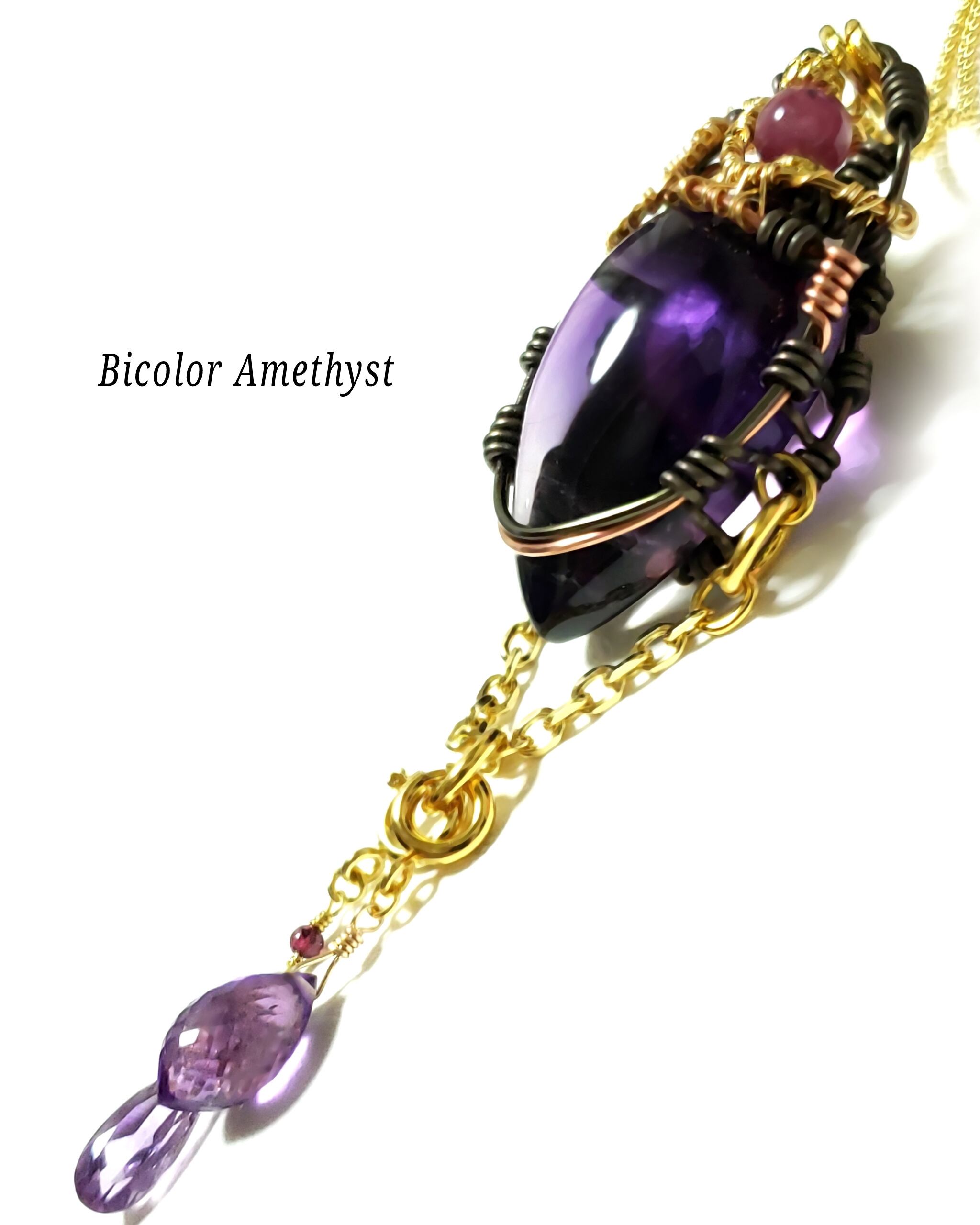 アメジスト(バイカラー)のワイヤーアート・ペンダント