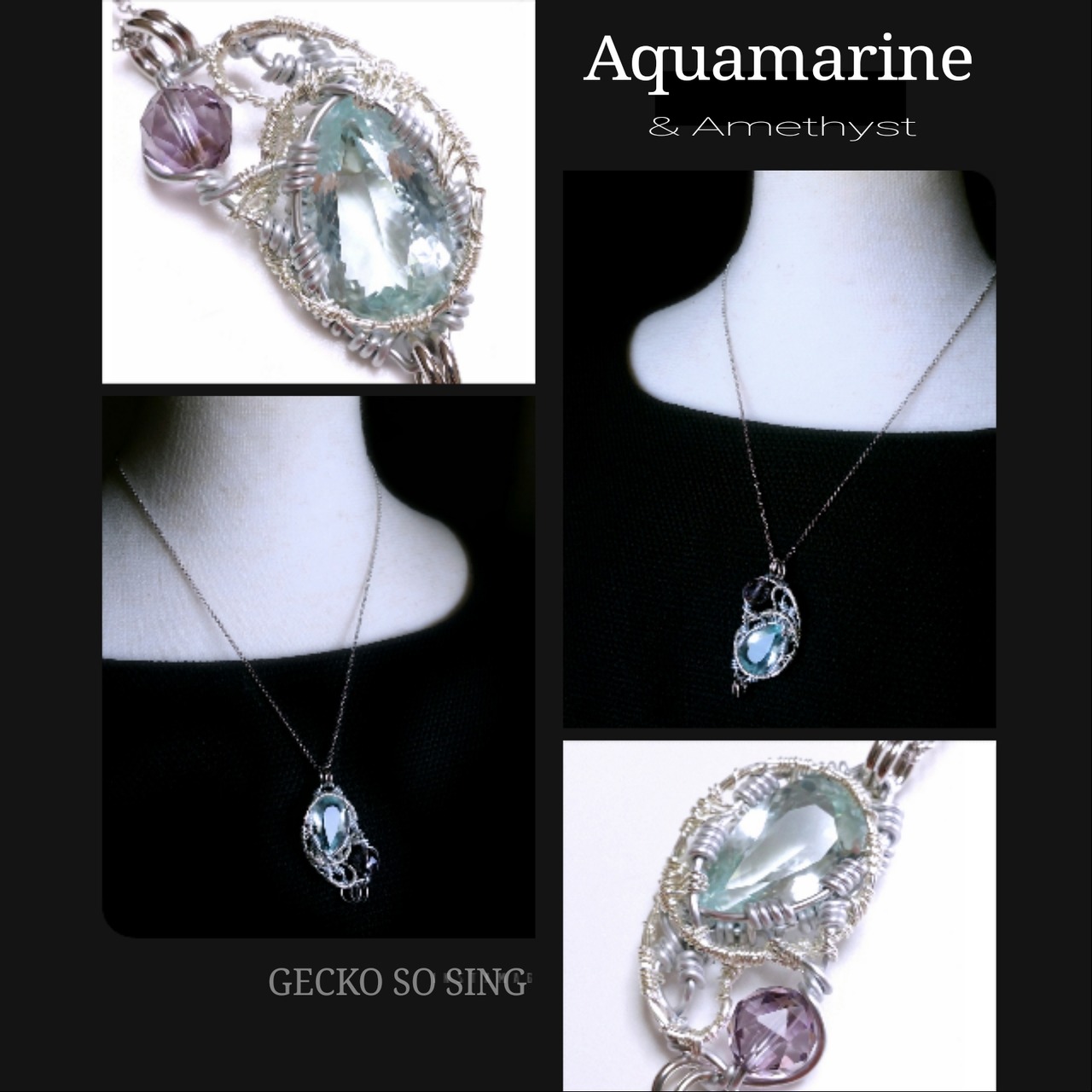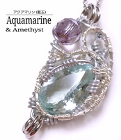 宝石質アクアマリン&アメジストのワイヤーアート・ペンダント