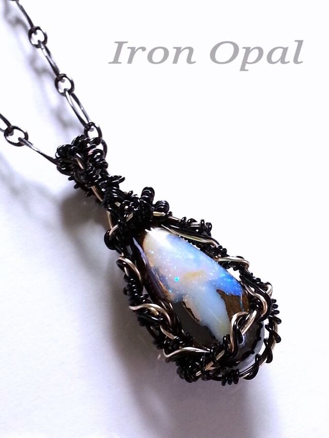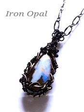 アイアンオパールのワイヤーアートペンダント