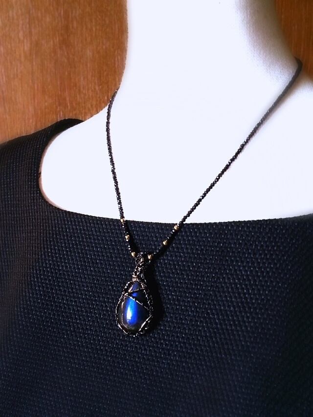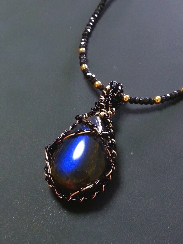 ブラック・ラブラドライトのワイヤーアートペンダント